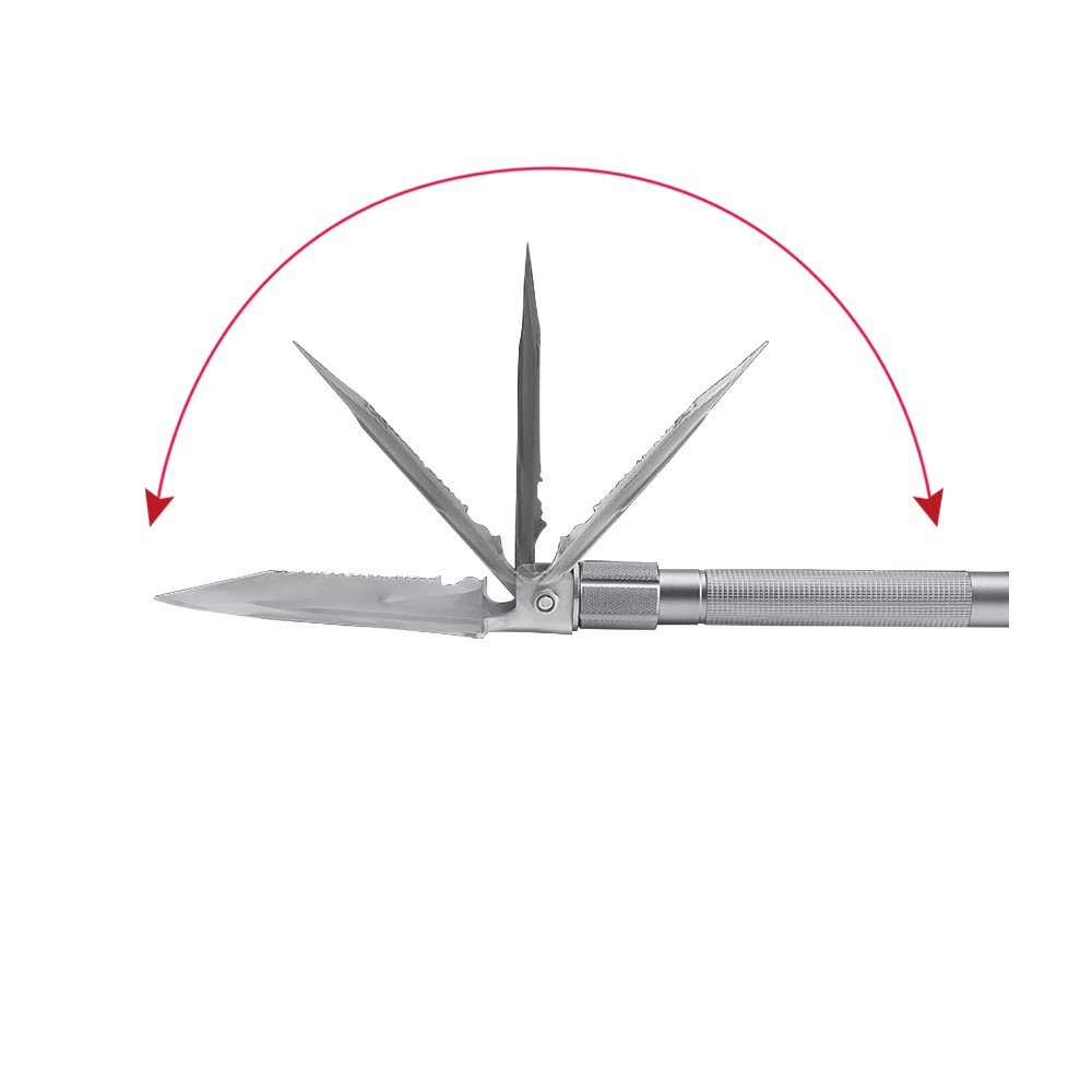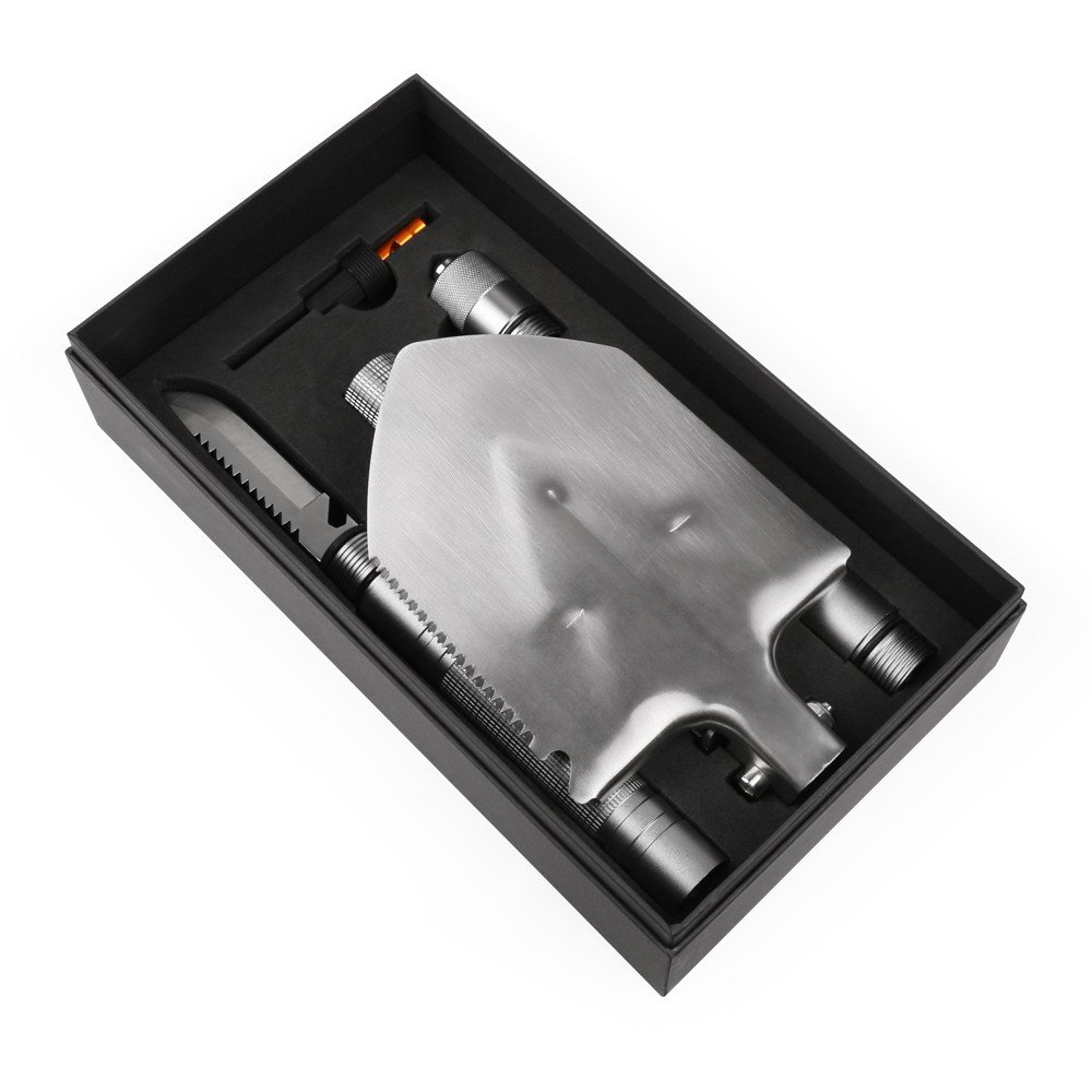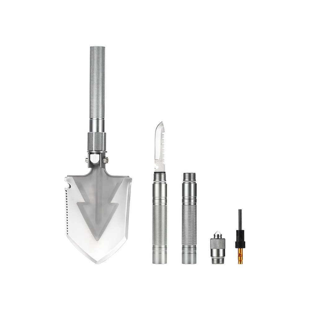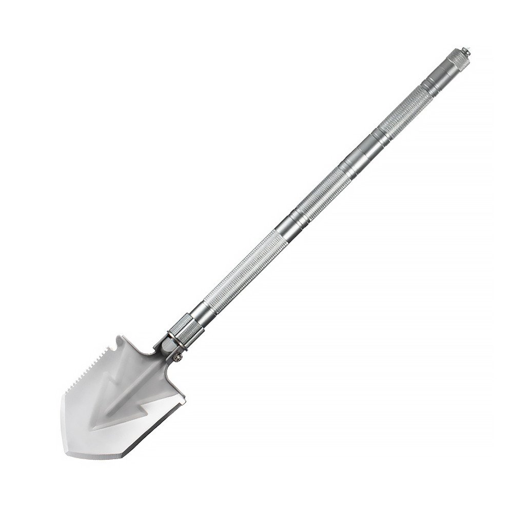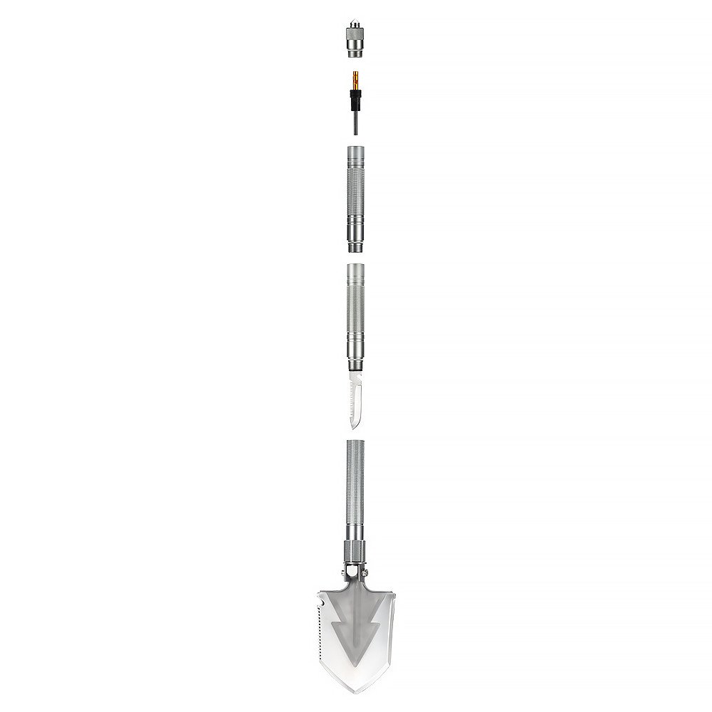 Багатофункціональна лопата для застосування у туризмі. Включає 15 функцій, у тому числі ніж, свисток, викрутка, склобій. Виготовлена з міцних та зносостійких матеріалів, нержавіюча сталь 20cr13 і високоміцний алюміній 6061-T6,зручної конструкції, легко упаковувати, зберігати та переносити. Витримує значні механічні навантаження. Довжина лопати складає 1 метр.