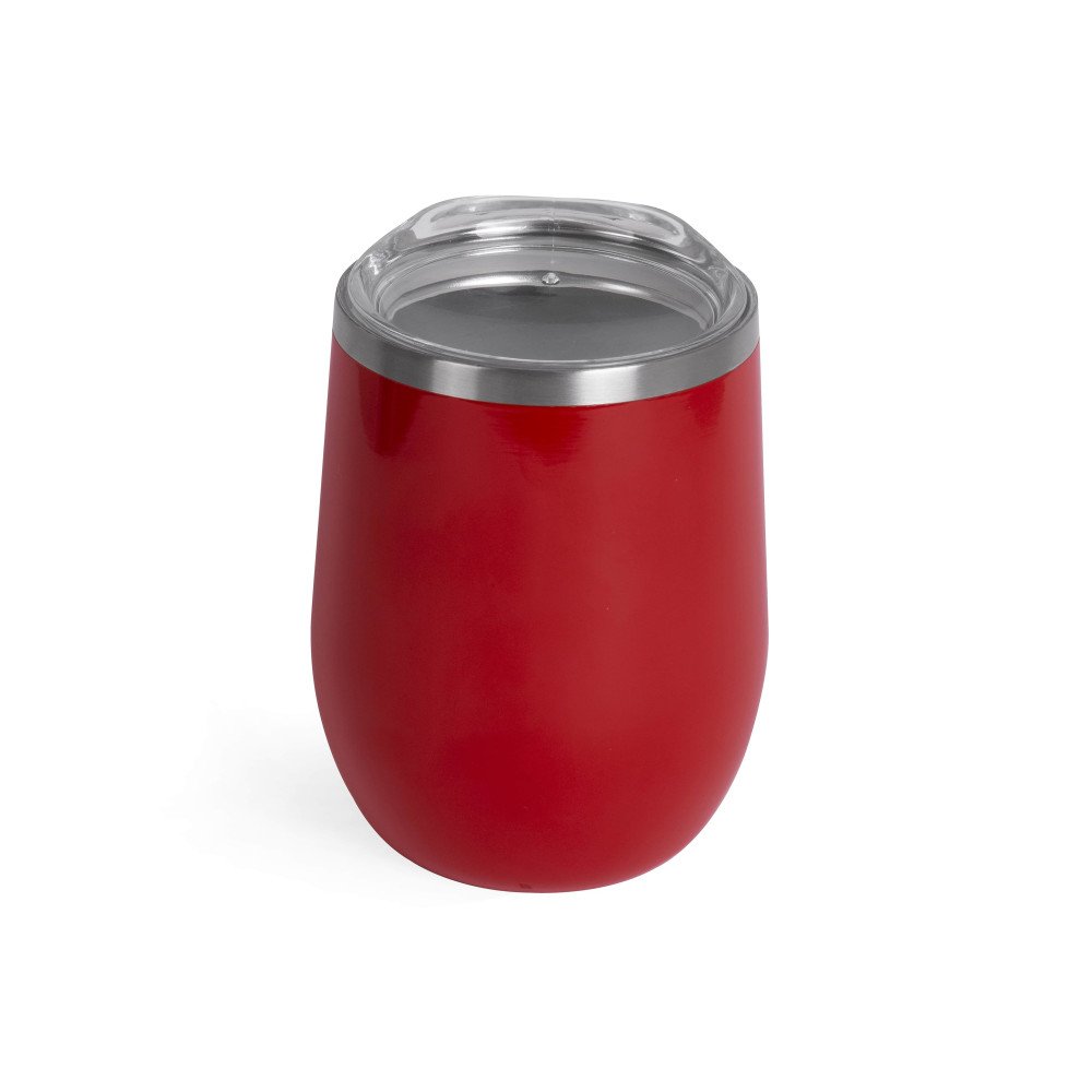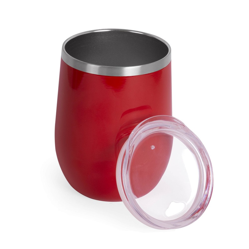 Металева термочашка з подвійними стінками з нержавіючої сталі ( глянцеве покриття емаль) і пластиковою прозорою кришкою з зсувним клапаном. Об'єм 350 мл. Індивідуальна картонна подарункова коробка. Розмір індивідуальної коробки: 12,5 х 9,7 х 9,7 см. Кришку можна мити в посудомийній машині. Корпус мити тільки вручну, щоб не пошкодити кольорове покриття. Підтримує температуру протягом 6-ти годин